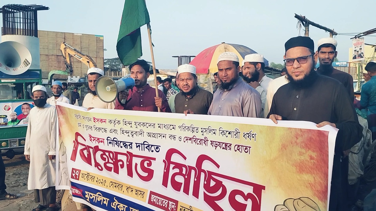 ধর্ষণ, গুম, হত্যা ও সন্ত্রাসী কর্মকাণ্ডে জড়িত থাকার অভিযোগে উগ্রবাদী-জঙ্গী সংগঠন ইসকনকে নিষিদ্ধের দাবিতে শায়েস্তাগঞ্জে বিক্ষোভ মিছিল