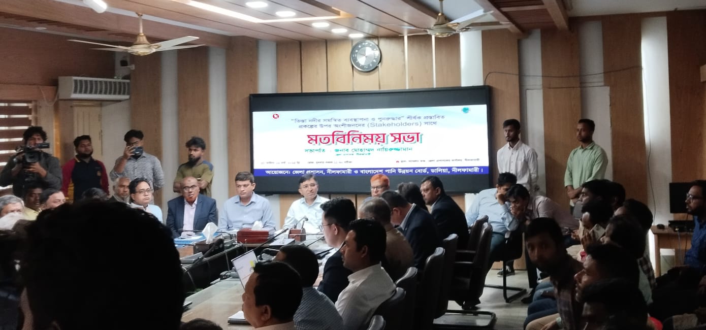 তিস্তা মেগা প্রকল্প বাস্তবায়নে তিস্তা নদী বেষ্টিত উত্তরের জেলা নীলফামারীর অংশীজনদের সঙ্গে মতবিনিময় করছে পানি উন্নয়ন বোর্ড ও প্রকল্প বাস্তবায়নকারী সংস্থা পাওয়ার চায়না।