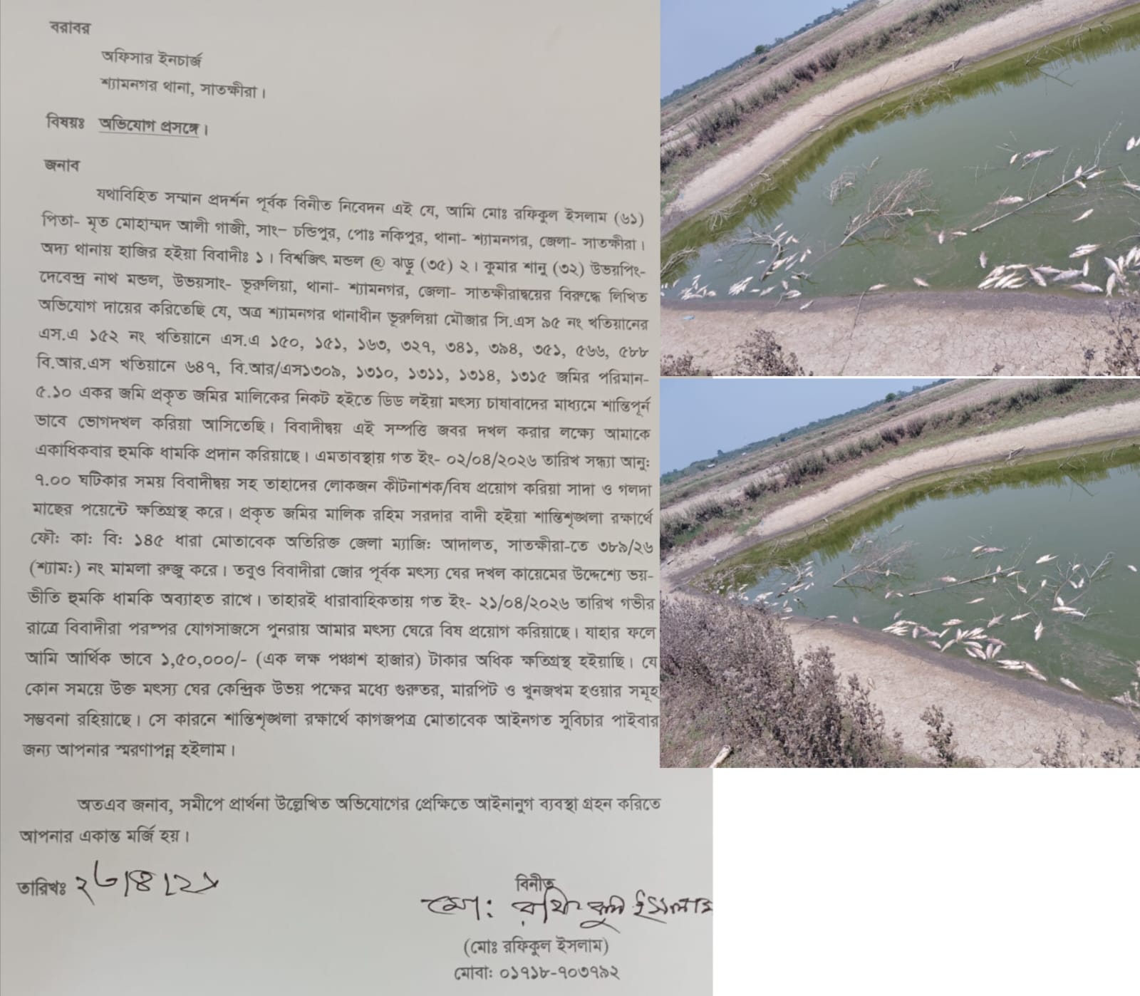বি.দ্র.: পুলিশ ঘটনার রহস্য উদঘাটনে ওই এলাকার সিসিটিভি ফুটেজ সংগ্রহ করার প্রক্রিয়া শুরু করেছে। এখনো পর্যন্ত কোনো মামলা দায়ের না হলেও পুলিশি তৎপরতা অব্যাহত রয়েছে।