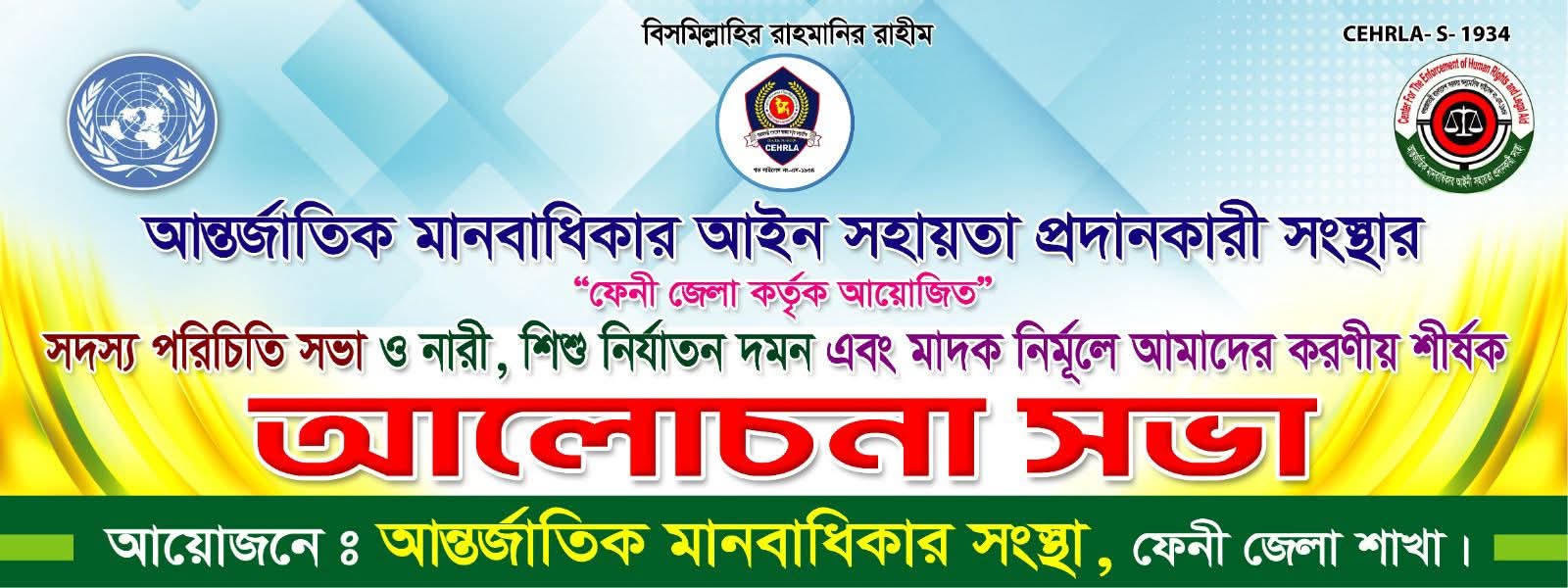মোহাম্মদ হানিফ, স্টাফ রিপোর্টার: আন্তর্জাতিক মানবাধিকার আইন সয়হাতা প্রদান কারী সংস্থা ফেনী জেলা শাখার সকল