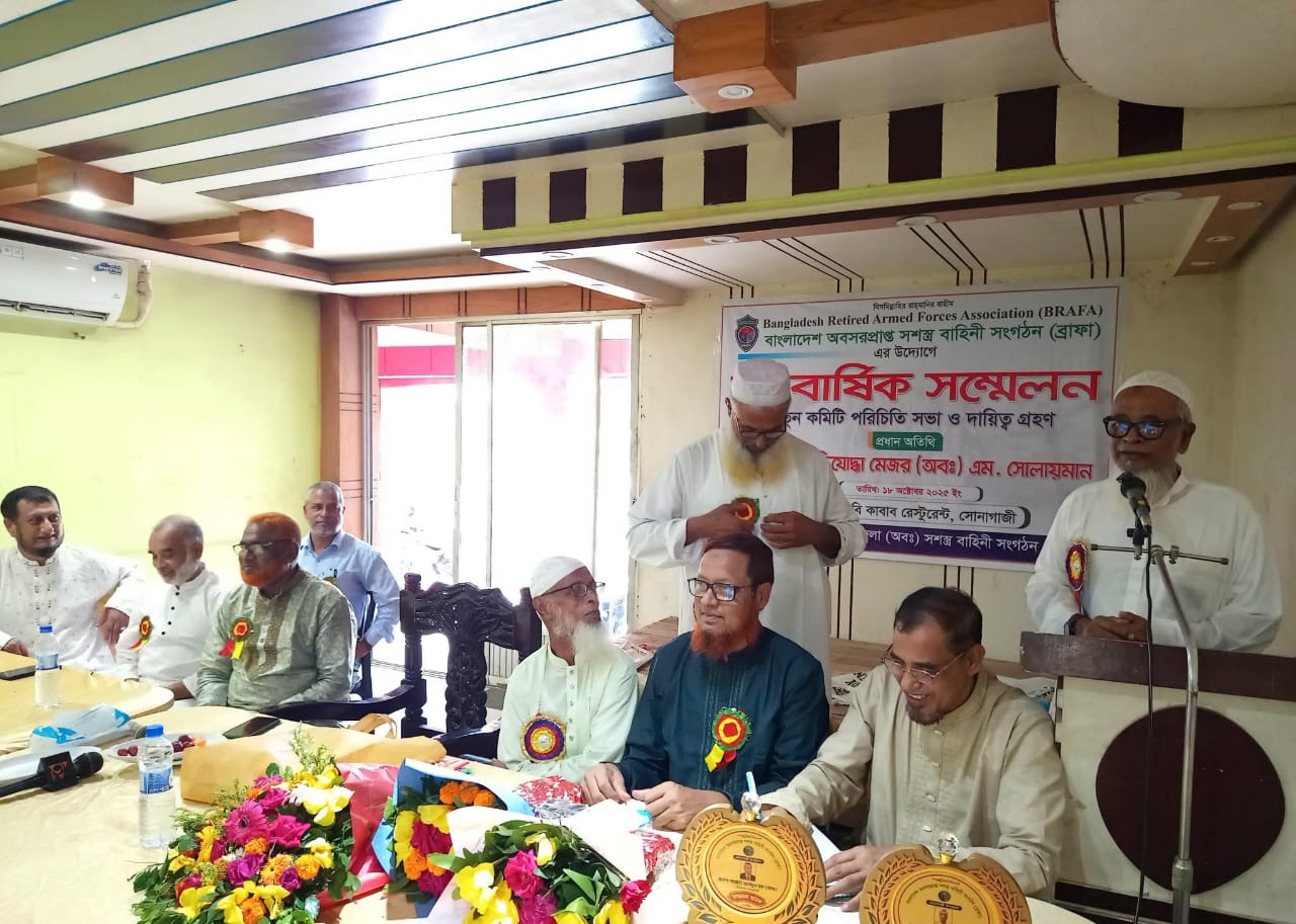 মোহাম্মদ হানিফ,স্টাফ রিপোর্টার ফেনী:বাংলাদেশ অবসরপ্রাপ্ত সশস্ত্র বাহিনী সংগঠন (ব্রাফা’র) সোনাগাজী উপজেলা কমিটির দ্বি-বার্ষিক সম্মেলন পৌর শহরের হারবি কনভেনশন সেন্টার অনুষ্ঠিত হয়।