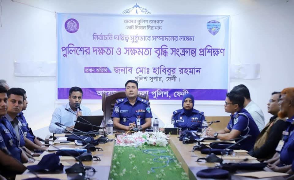 ফেনী পুলিশ সুপারের কর্যালয়ের কনফারেন্স রুমে ০৩ দিন মেয়াদী নির্বাচনী দায়িত্ব সুষ্টুভাবে সম্পাদনের লক্ষ্যে কনস্টেবল হতে ইন্সপেক্টর পদমর্যাদার পুলিশ সদস্যদের দক্ষতা ও সক্ষমতা বৃদ্ধি প্রশিক্ষণ কোর্স (২য় ব্যাচ) এর শুভ উদ্বোধন করা হয়েছে।