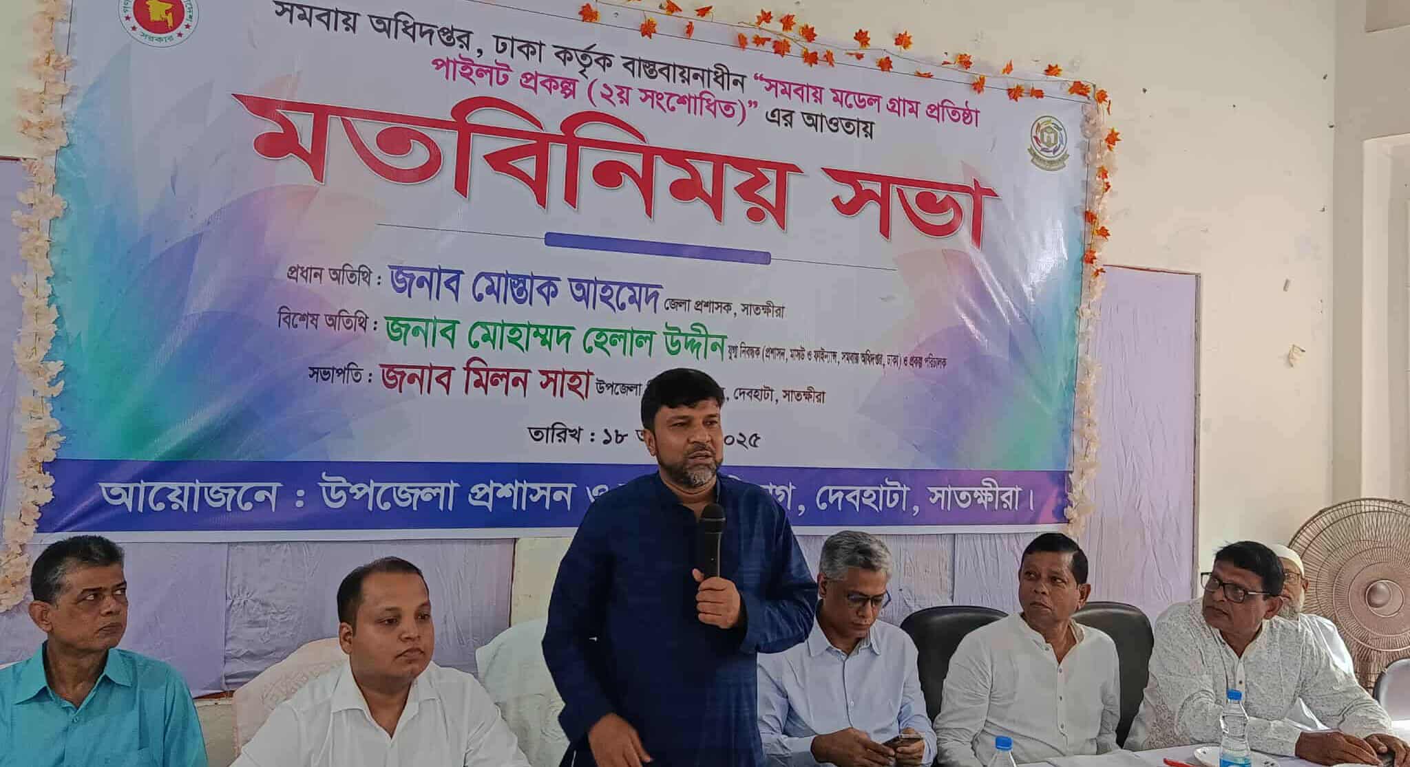 জি এম আব্বাস উদ্দিন,সাতক্ষীরা জেলা প্রতিনিধিঃ দেবহাটা উপজেলাকে সমবায় মডেল গ্রাম প্রতিষ্ঠার লক্ষ্যে মতবিনিময় সভায় সমবায় দর্শন অনুযায়ী একটি করে গ্রামকে উন্নত ও আধুনিক গ্রামে রূপান্তর করা হবে জেলা প্রশাসক মোস্তাক আহমেদ।