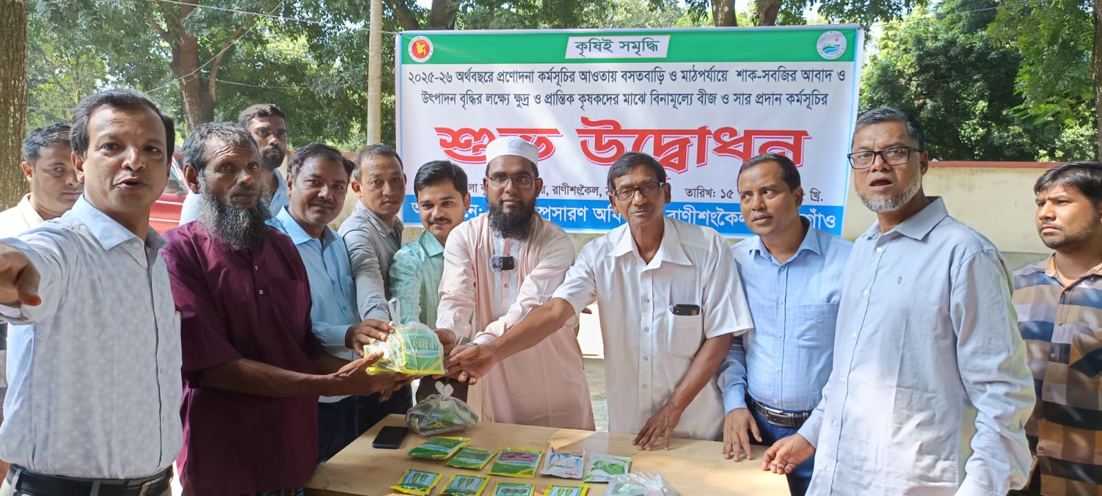 একে আজাদ,ঠাকুরগাঁও প্রতিনিধি:রাণীশংকৈলে ২০২৫-২৬ অর্থবছরের রবি মৌসুমে ক্ষুদ্র ও প্রান্তিক কৃষকদের মাঝে বিনামূল্যে বীজ ও সার বিতরণ করা হয়েছে। বুধবার (১৫ অক্টোবর) দুপুরে বসতবাড়ি ও মাঠ পর্যায়ে শাকসবজির আবাদ ও উৎপাদন বৃদ্ধির লক্ষ্যে উপজেলা কৃষি অফিসের উদ্যোগে কৃষি অফিস চত্বরে এ কর্মসূচির আয়োজন করা হয়।কর্মসূচির উদ্বোধন করেন উপজেলা সহকারী কমিশনার (ভূমি) মজিবুর রহমান। এ সময় উপজেলা কৃষি কর্মকর্তা শহীদুল ইসলাম, প্রাণিসম্পদ কর্মকর্তা ডা. রুপম চন্দ্র মহন্ত, মৎস্য কর্মকর্তা আব্দুল জলিল, কৃষি সম্প্রসারণ কর্মকর্তা শফিউল হাসান ও বিআরডিবি কর্মকর্তা নিহার রঞ্জন রায়সহ বিভিন্ন ইউনিয়নের কৃষকরা উপস্থিত ছিলেন।প্রণোদনা কর্মসূচির আওতায় ৫৫০ জন কৃষকের মাঝে বেগুন, লাউ, পালংশাক, লালশাক, মটরশুটি, মুলা, বাটিশাক, মিষ্টিকুমড়া ও শসাসহ শীতকালীন সবজির বীজ ও সার বিতরণ করা হয়।কর্মকর্তারা জানান, এই কর্মসূচির মাধ্যমে কৃষকরা আগাম শীতকালীন সবজি চাষে উৎসাহিত হবেন এবং স্থানীয়ভাবে সবজি উৎপাদন উল্লেখযোগ্যভাবে বৃদ্ধি পাবে।