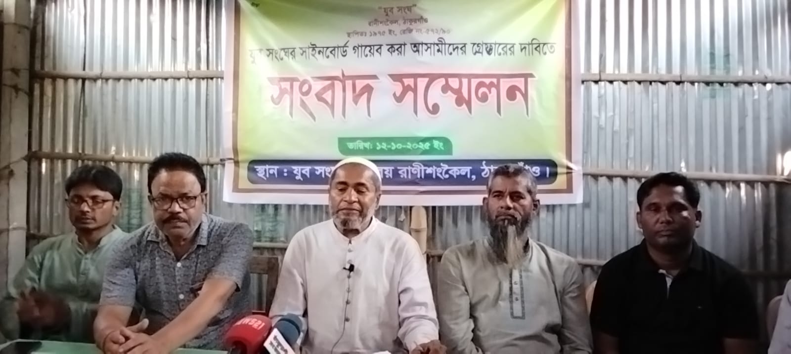 রাণীশংকৈলে যুব সংঘের সাইনবোর্ড ও পিলার চুরির অভিযোগ সংবাদ সম্মেলন