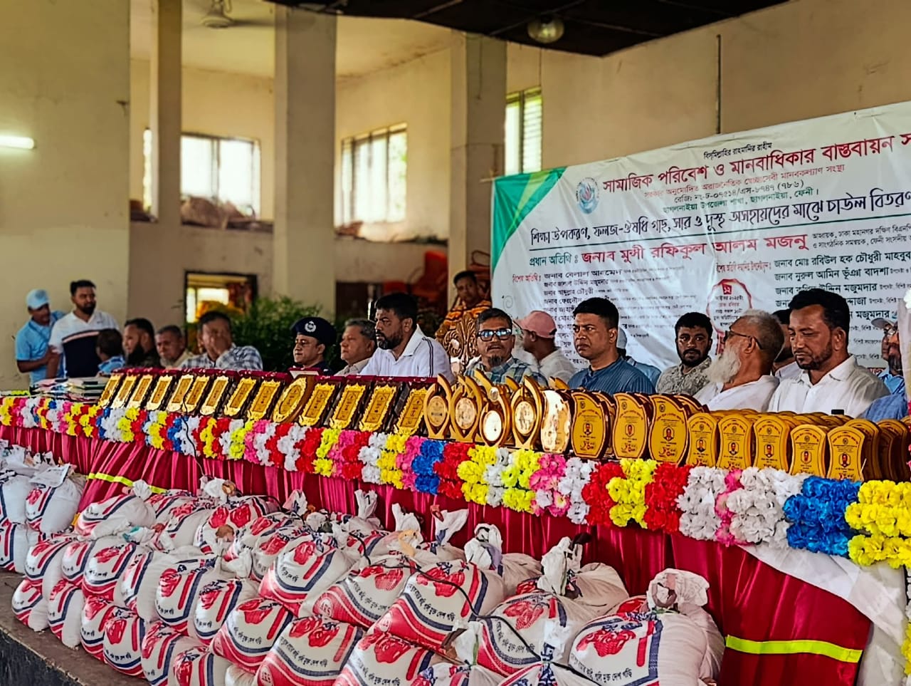 সমাজিক পরিবেশ ও মানবাধিকার বাস্তবায়ন সংস্থা উদ্যোগে দুস্থ অসহায়দের মাঝে চাউল বিতরণের আয়োজন করা হয়