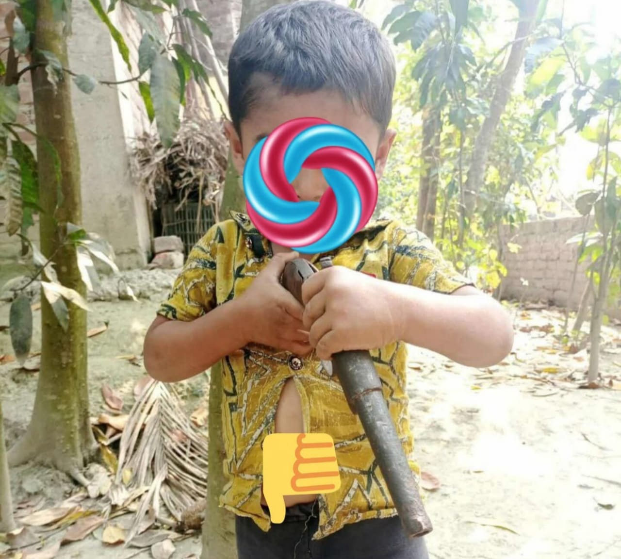 সামাজিক মাধ্যমে পাইপগান হাতে শিশুর ছবি প্রকাশ হলে শুরু হয় তোলপাড়।