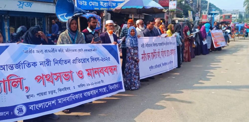 ঝিনাইদহে নারীর প্রতি সহিংসতার প্রতিবাদে মানববন্ধন