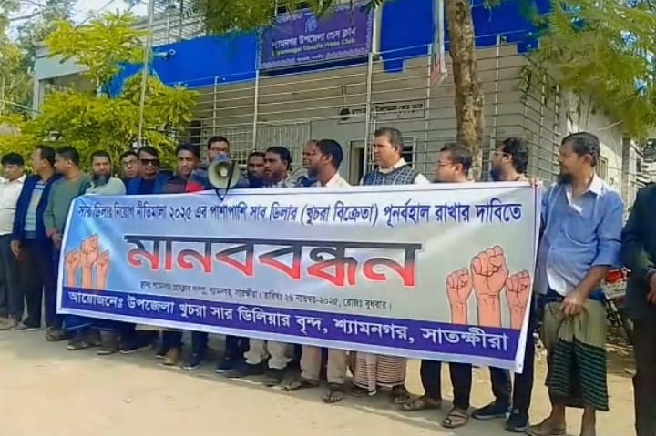 শ্যামনগরে নতুন সার নীতিমালা বাতিলের দাবিতে খুচরা ডিলারদের মানববন্ধন