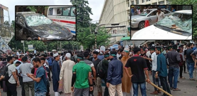শাহবাগে ছাত্রলীগ-আন্দোলনকারীদের সংঘর্ষ, ৫০ গাড়ি ভাঙচুর
