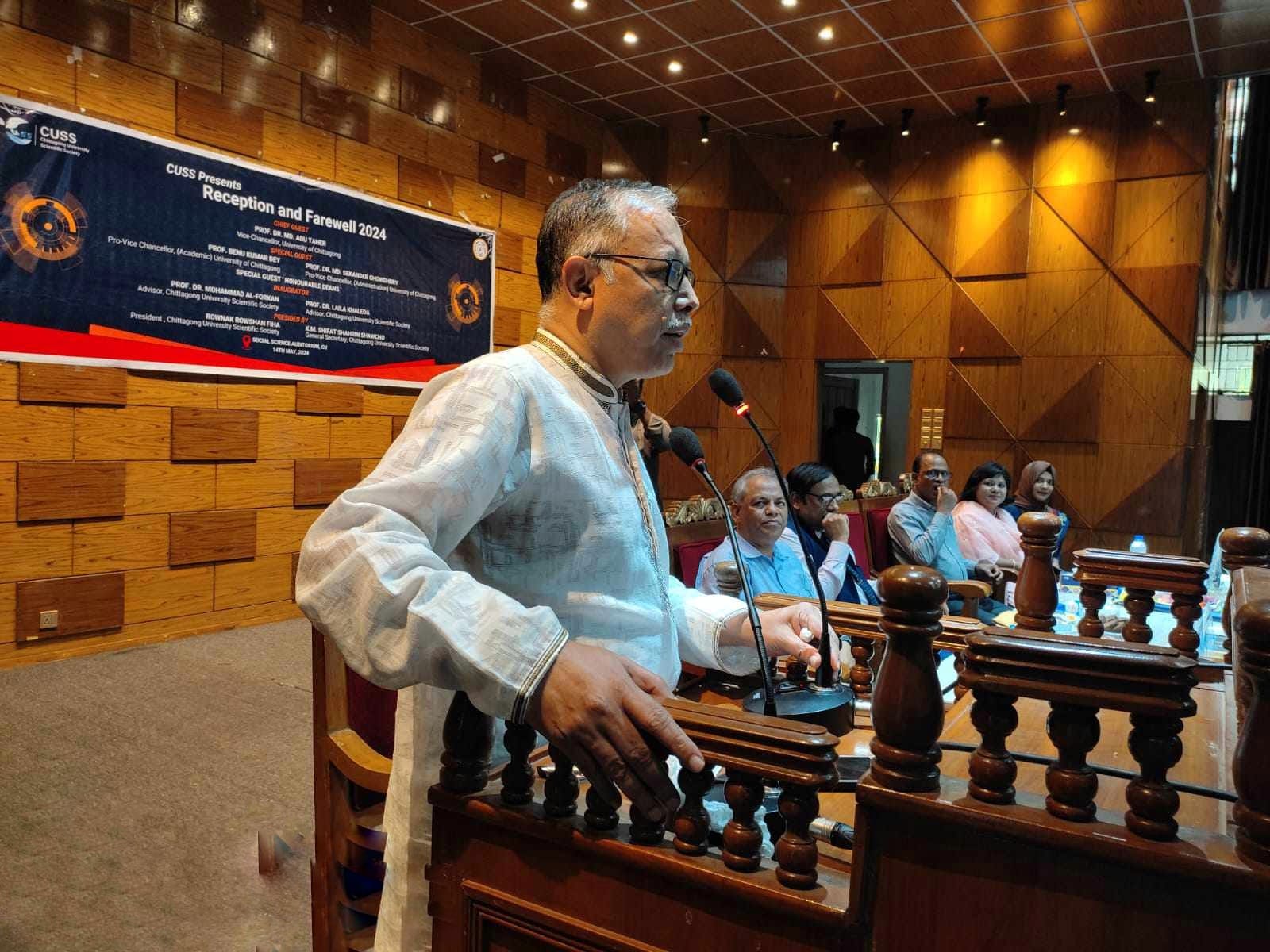 নিজেস্ব সংবাদদাতা: চট্টগ্রাম বিশ্ববিদ্যালয়ের (চবি) বিজ্ঞানভিত্তিক ক্লাব সায়েন্টিফিক সোসাইটির (সিইউএসএস) উদ্যোগে “নবীন বরন ও প্রবীণ বিদায় ২০২৪” অনুষ্ঠিত হয়েছে। মঙ্গলবার