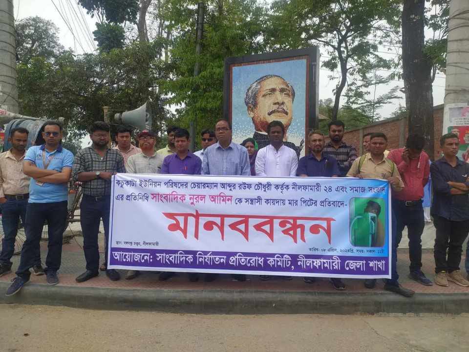 নীলফামারীতে সাংবাদিককে সন্ত্রাসী কায়দায় মারপিটের প্রতিবাদে মানববন্ধন