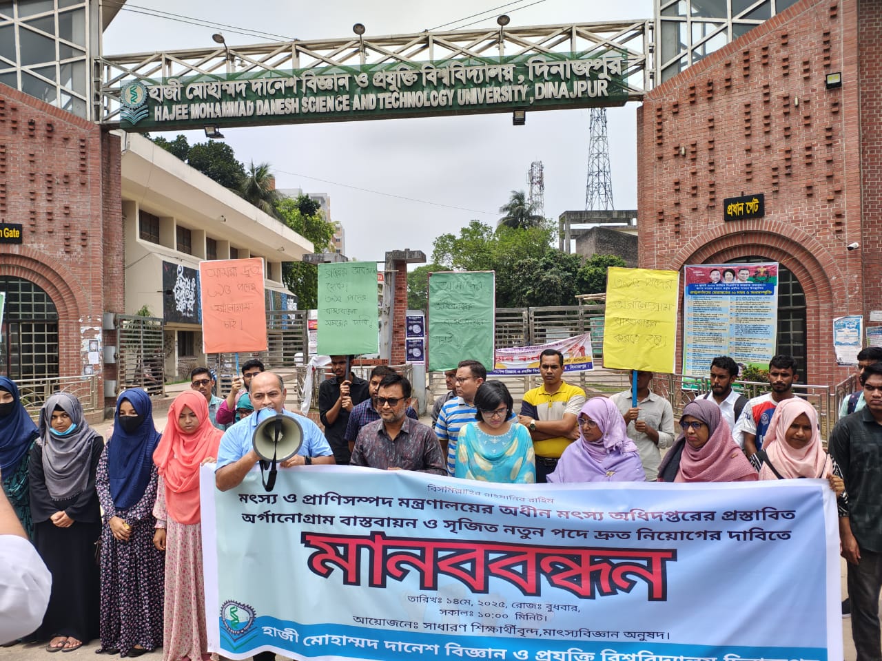হাবিপ্রবিতে মৎস্য অধিদফতরের অর্গানোগ্রাম বাস্তবায়নের দাবিতে শিক্ষার্থীদের মানববন্ধন