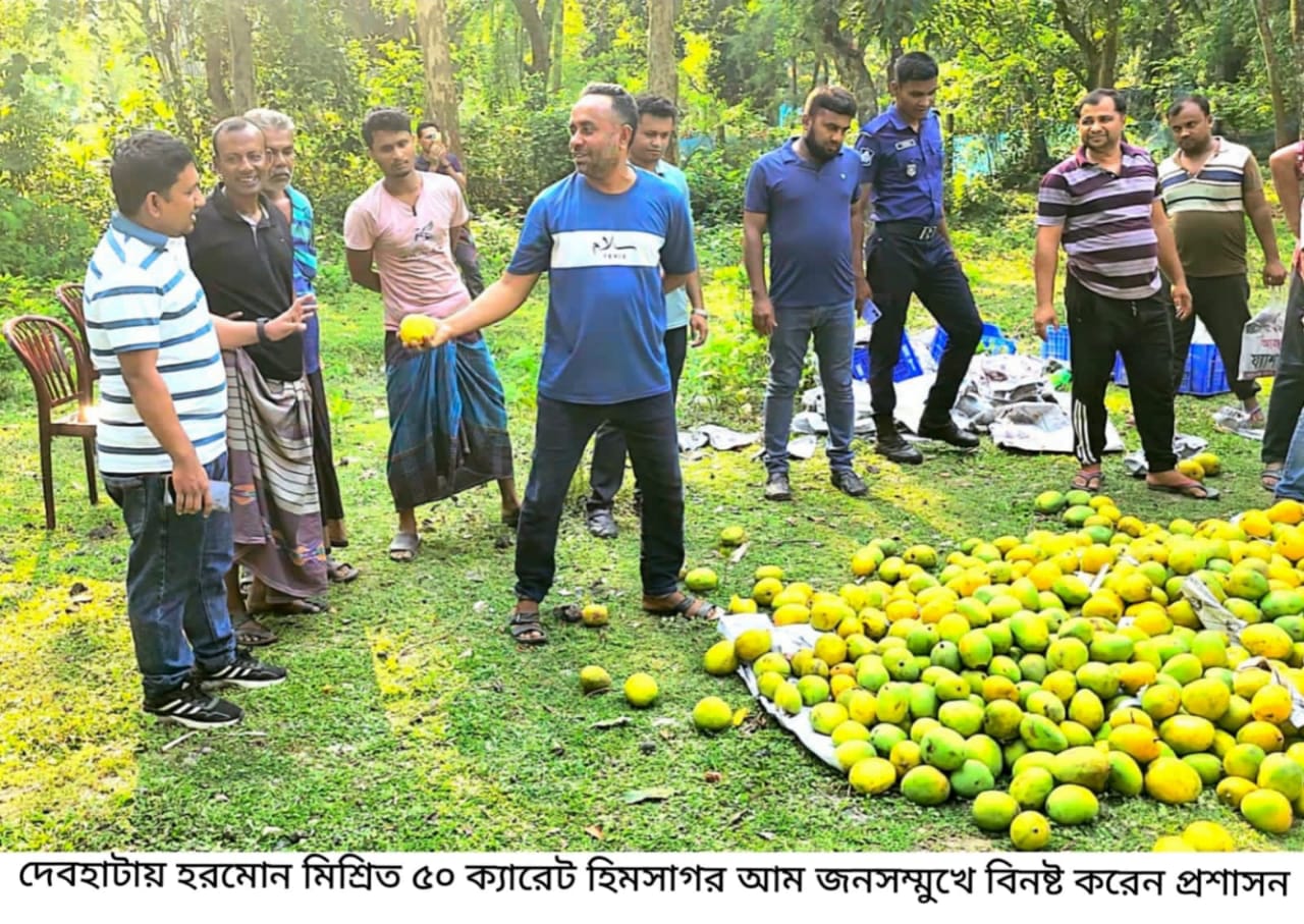 দেবহাটায় হরমোন মিশ্রিত ৫০ ক্যারেট হিমসাগর আম জনসম্মুখে বিনষ্ট করেন প্রশাসন