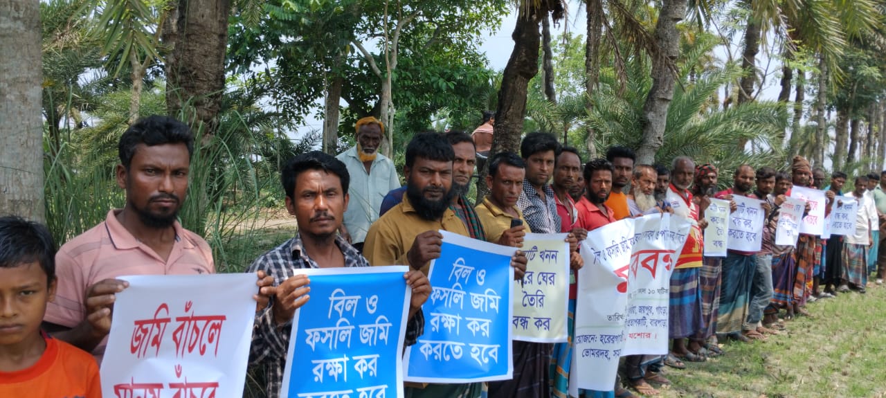 কৃষিজমি ধ্বংস করে চলছে ঘের দখল: কোচ বিলে ফসলি জমি রক্ষায় চাষিদের মানববন্ধন
