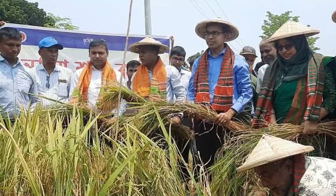 ঝিনাইদহে সমলয় পদ্ধতিতে বোরো ধান কর্তন