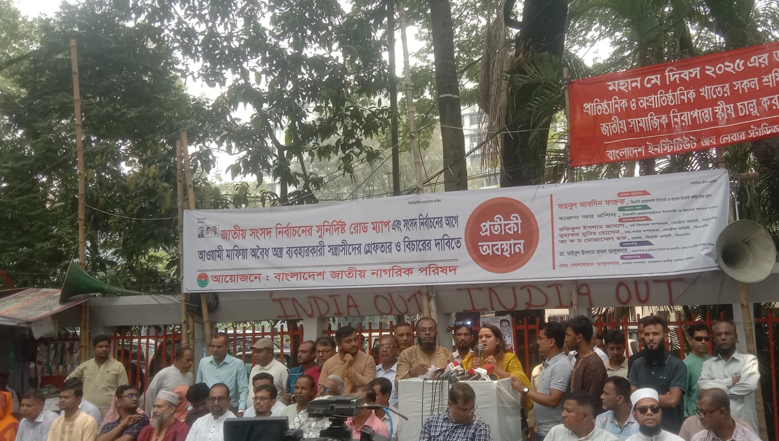 প্রেসক্লাবের সামনে বাংলাদেশ জাতীয় নাগরিক পরিষদের প্রতীকী অবস্থান