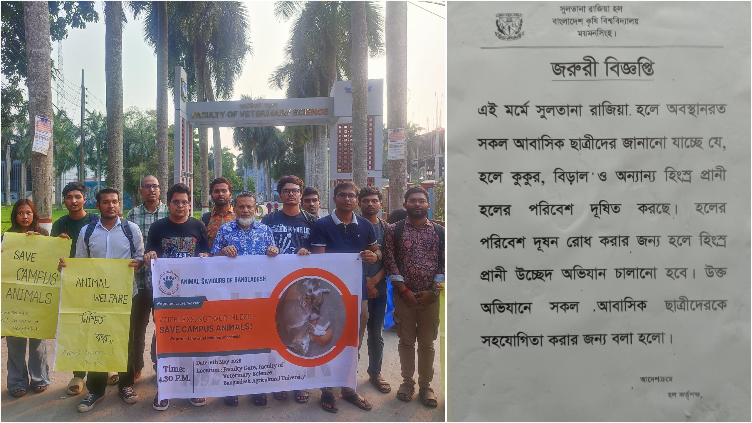 বাকৃবি প্রতিনিধি: বাংলাদেশ কৃষি বিশ্ববিদ্যালয়ের (বাকৃবি) সুলতানা রাজিয়া হলে প্রাণী উচ্ছেদ অভিযান চালানোর বিষয়ে প্রকাশিত বিজ্ঞপ্তির প্রতিবাদে স্বেচ্ছাসেবী সংগঠন ‘অ্যানিমেল