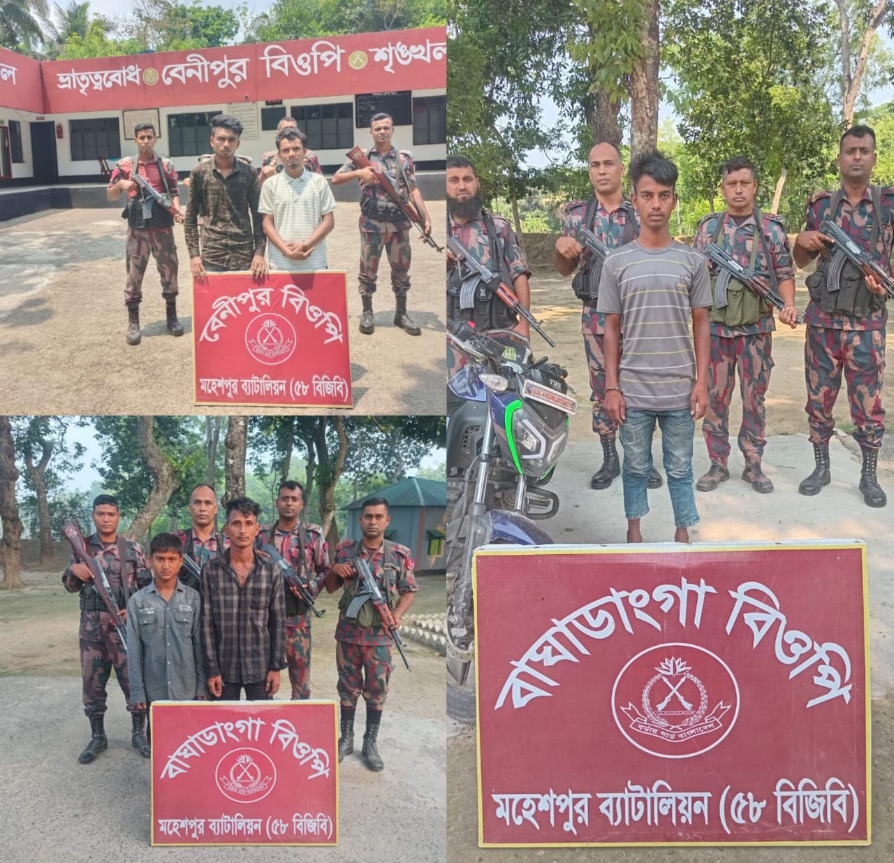 মহেশপুর ব্যাটালিয়ন (৫৮ বিজিবি) কর্তৃক দালা সহ অবৈধভাবে সীমান্ত পারাপারকারী বাংলাদেশী নাগরিক আটক