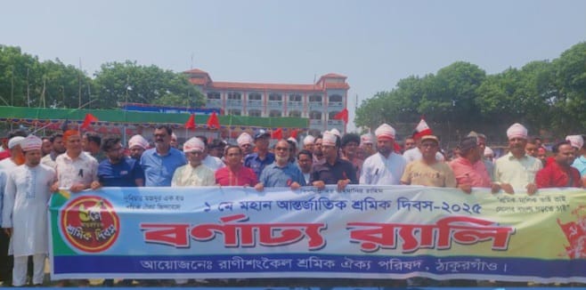 একে আজাদ,ঠাকুরগাঁও প্রতিনিধি:- রাণীশংকৈলে মহান আন্তর্জাতিক শ্রমিক দিবস পালন উপলক্ষে র‌্যালি ও আলোচনা সভা অনুষ্ঠিত হয়। এ উপলক্ষে বৃহস্পতিবার (১