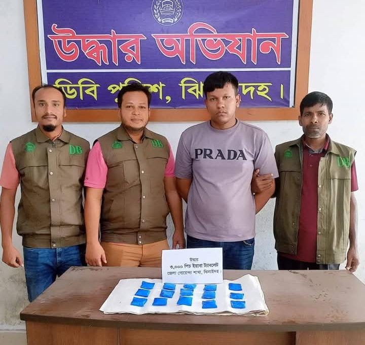 ঝিনাইদহে তিন হাজার পিস ইয়াবাসহ মাদক ব্যবসায়ী আটক