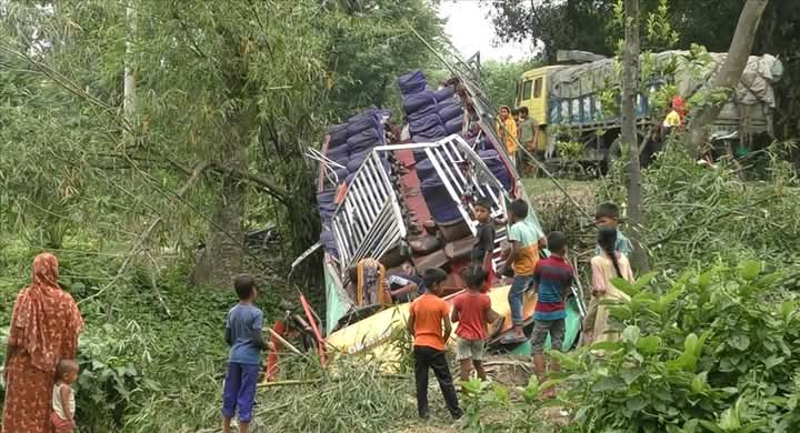 ঝিনাইদহ শৈলকূপায় বাস নিয়ন্ত্রণ হারিয়ে খাদে, ছাদ গাছের ডালে