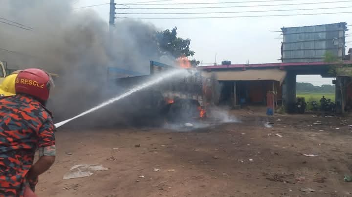 কালিগঞ্জে ওয়েল্ডিংয়ের আগুনে পুড়ে গেল ২ ট্রাক, আহত ২