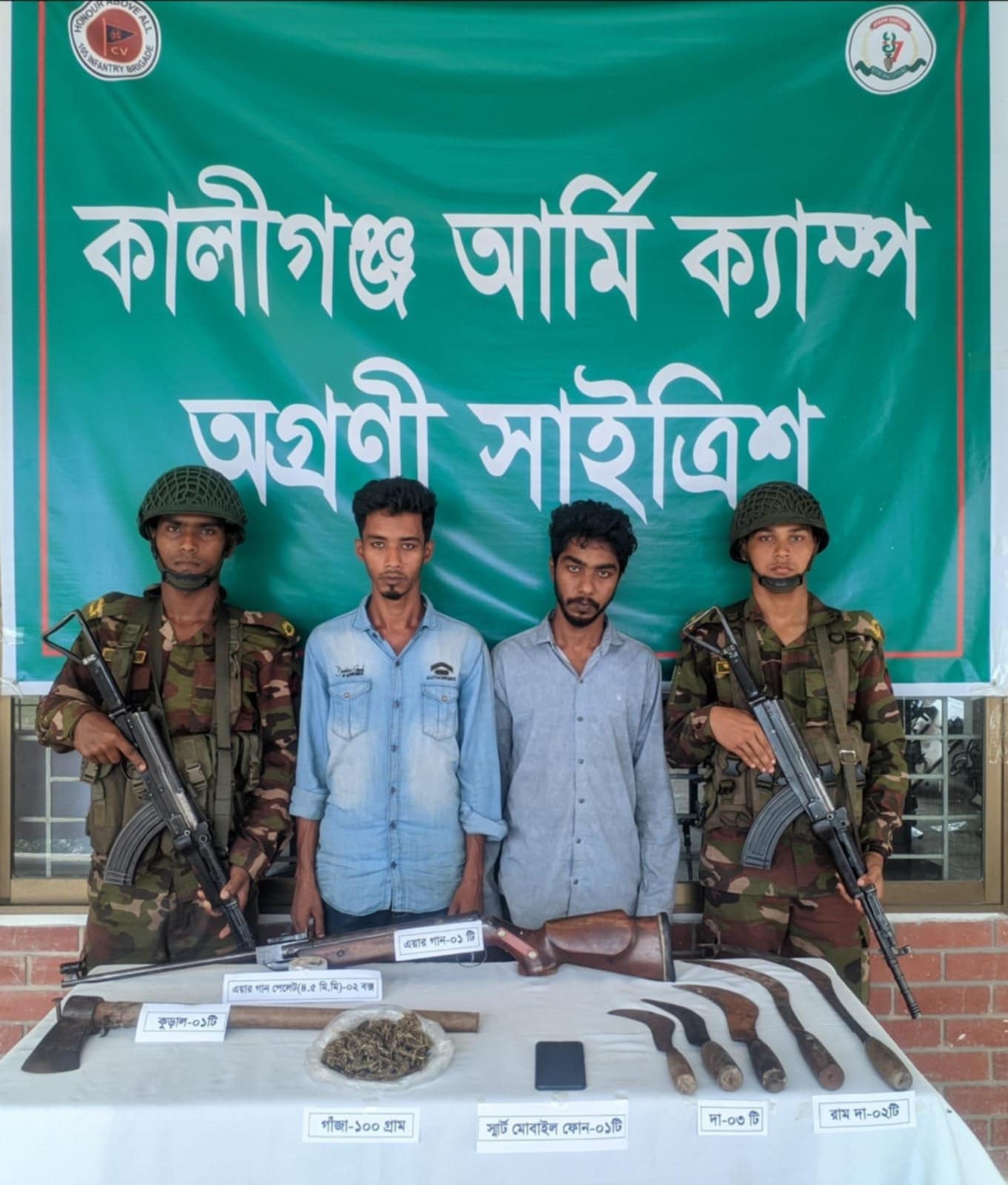 কালীগঞ্জে অস্ত্র, গাজা সহ কিশোর গ্যাংয়ের ২ ভাই আটক