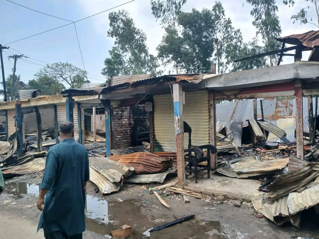 শায়েস্তাগঞ্জের সুতাং বাজারে আগুনে ১৫ টি দোকান ছাই