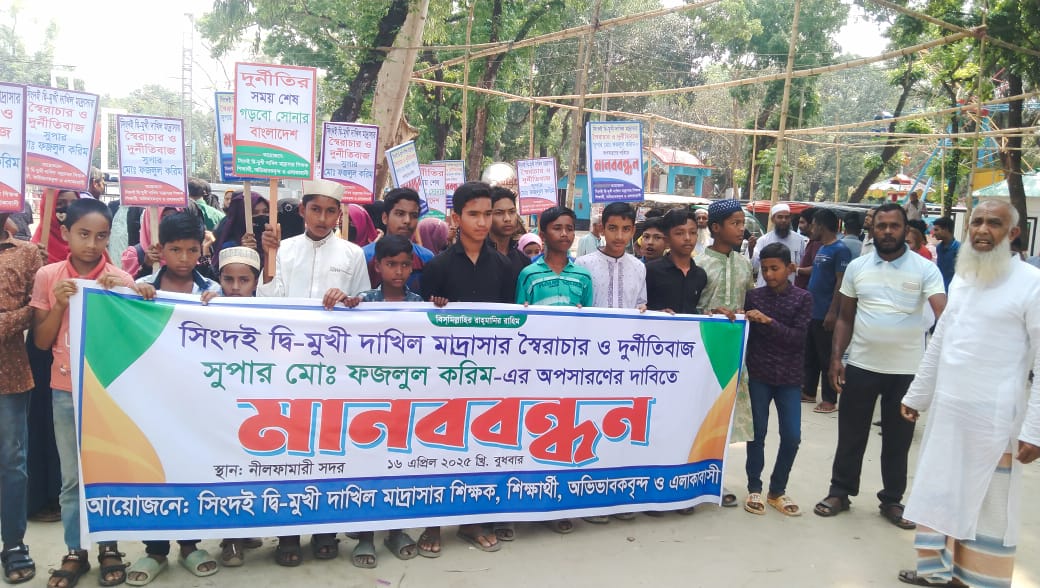 নীলফামারীতে মাদ্রাসার সুপারের অনিয়মের বিরুদ্ধে মানববন্ধন