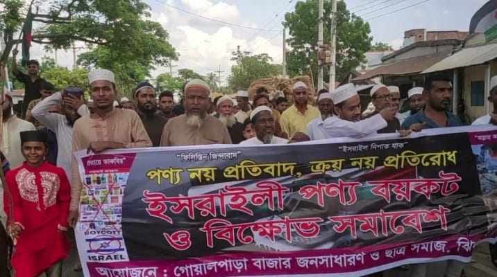 ঝিনাইদহে ব্যবসায়ীদের ইসরায়েলি পণ্য বয়কটের দাবিতে বিক্ষোভ