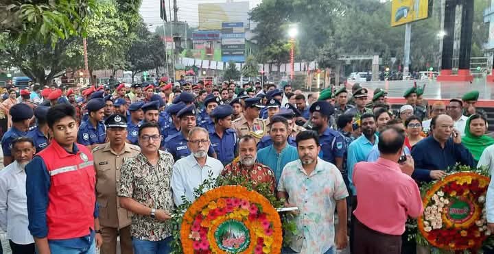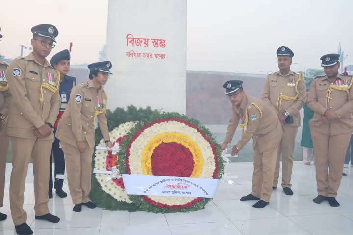 মহান স্বাধীনতা ও জাতীয় দিবস-২০২৫খ্রিঃ উপলক্ষে বিজয় স্মৃতিস্তম্ভে জেলা পুলিশ যশোরের পুস্পস্তবক অর্পণ