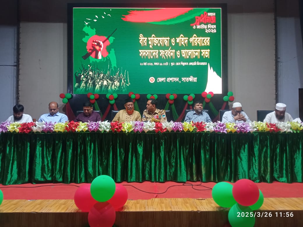মোঃ মোকাররাম বিল্লাহ ইমন সাতক্ষীরা:-সাতক্ষীরায় মহান স্বাধীনতা ও জাতীয় দিবস উপলক্ষে বীর মুক্তিযোদ্ধা ও শহিদ পরিবারকে সংবর্ধনা দেয়া হয়ছে। সাতক্ষীরা