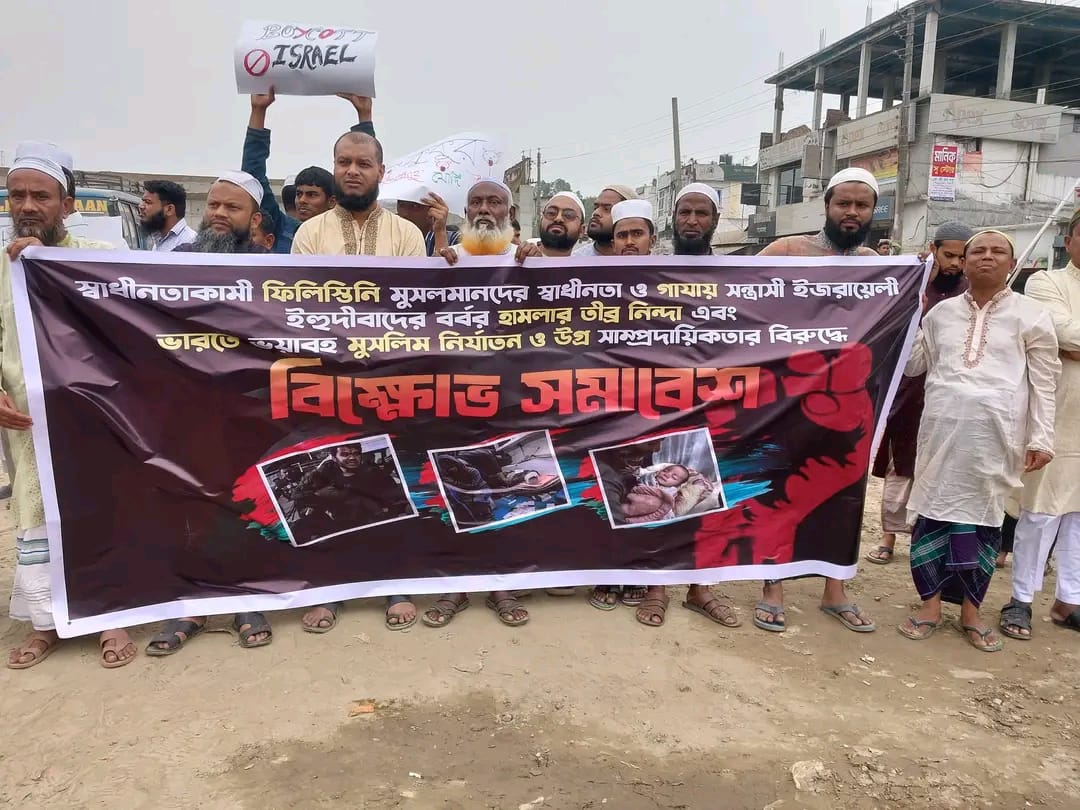 দিরাইয়ে শ্যামারচর বাজারে ফিলিস্তিনি মুসলমানদের উপর নির্মম বর্বরতা গণহত্যার প্রতিবাদ বিক্ষোভ মিছিল
