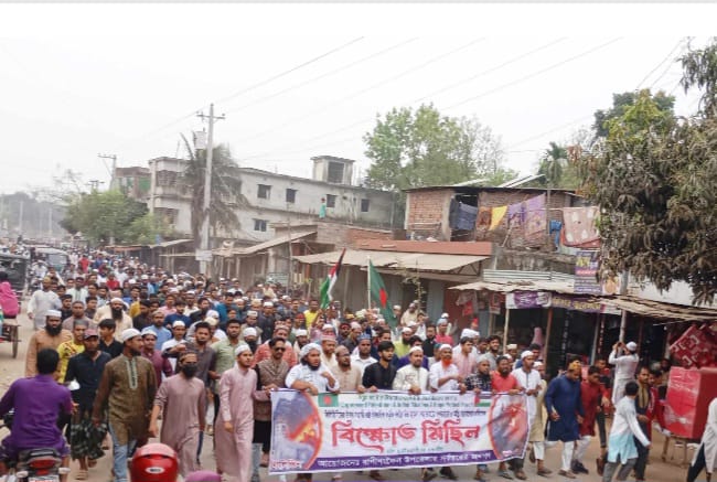 হরিপুরে হেফাজত ও তৌহিদী জনতার বিক্ষোভ মিছিল