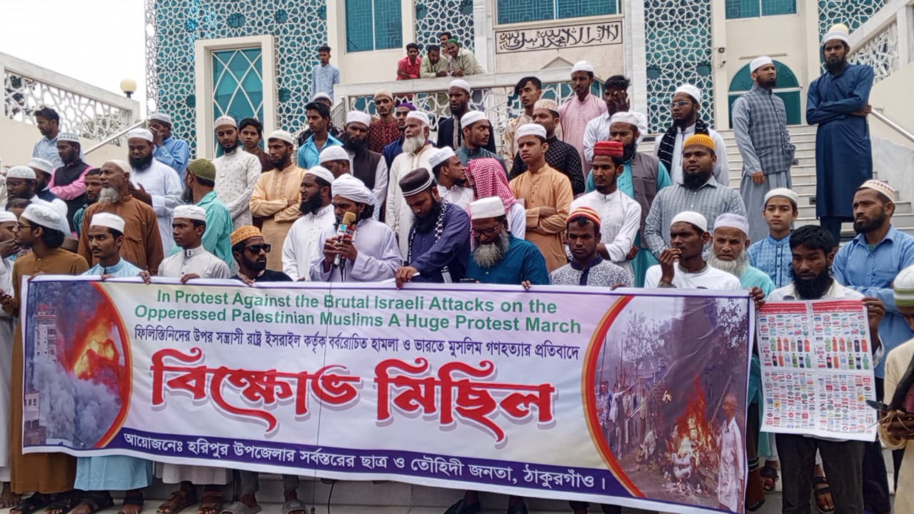 রাণীশংকৈলে ইসরাইলি কর্তৃক ফিলিস্তিন ও ভারতে মুসলমানদের উপর নির্মম বর্বরতা হত্যাযজ্ঞ ও নির্যাতনের প্রতিবাদে বিক্ষোভ মিছিল