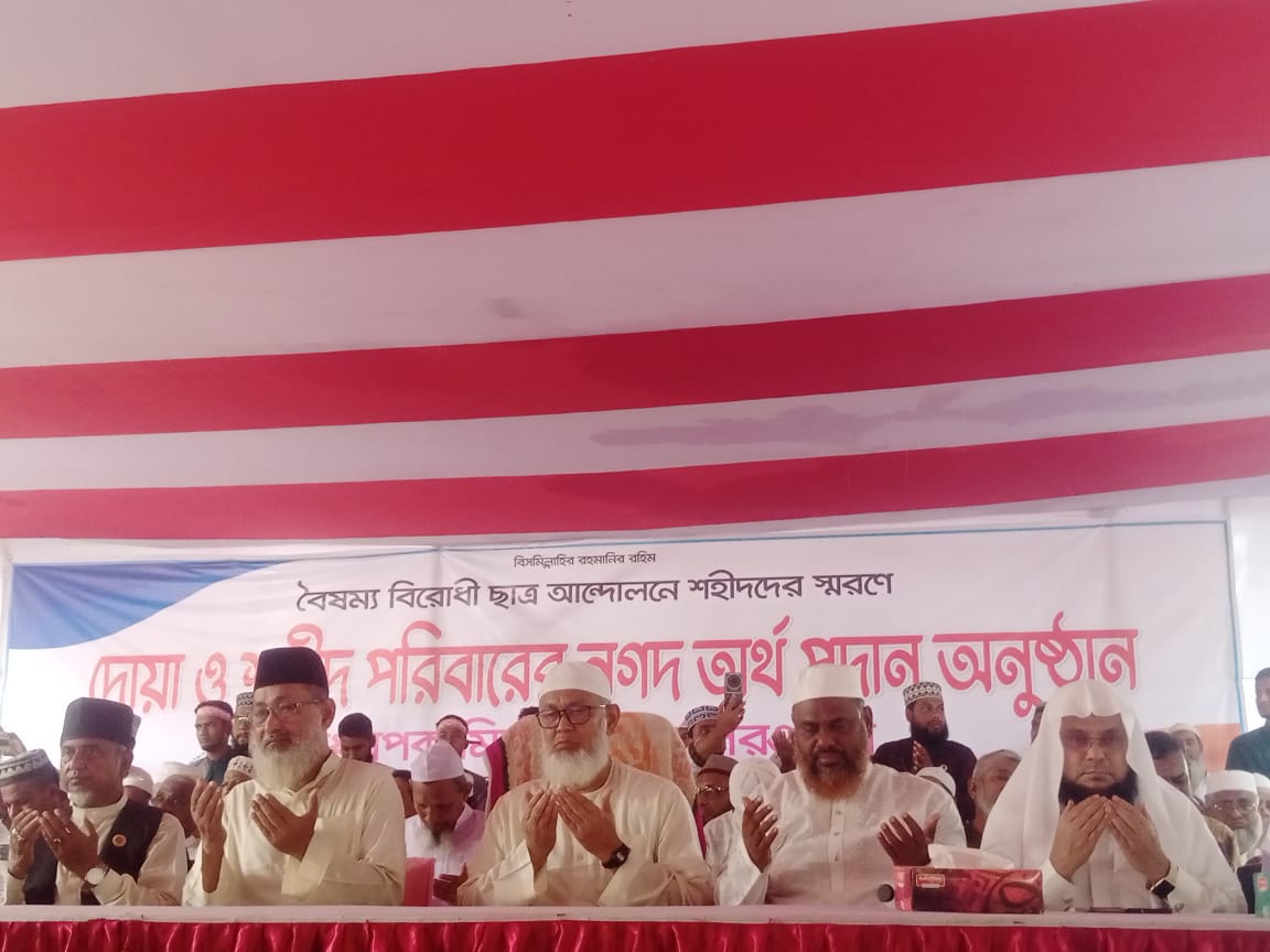 বৈষম্য বিরোধী ছাত্র আন্দোলনে শহীদদের স্মরণে দোয়া ও শহীদ পরিবারের নগদ অর্থ প্রদান অনুষ্ঠান