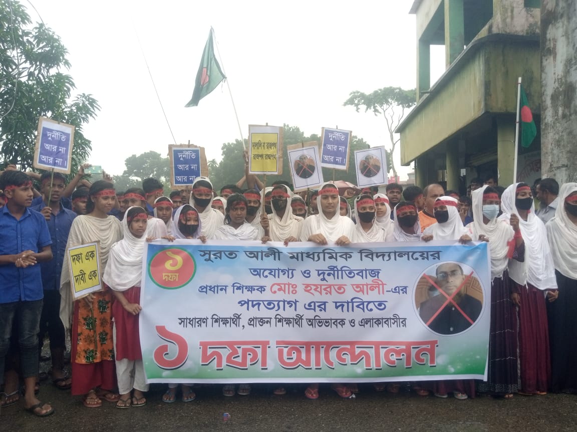 সাতক্ষীরাতে সুরত আলী বহুমুখী মাধ্যমিক বিদ্যালয়ের অযোগ্য ও দুর্নীতিবাজ প্রধান শিক্ষক মোঃ হযরত আলীর পদত্যাগের দাবিতে আন্দোলন