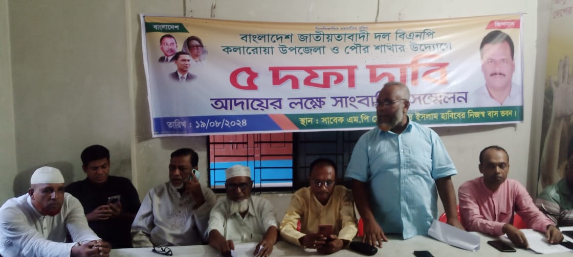 কলারোয়া উপজেলা ও পৌর বিএনপির উদ্যোগে ৫ দফা দাবি আদায়ের লক্ষে সংবাদ সম্মেলন