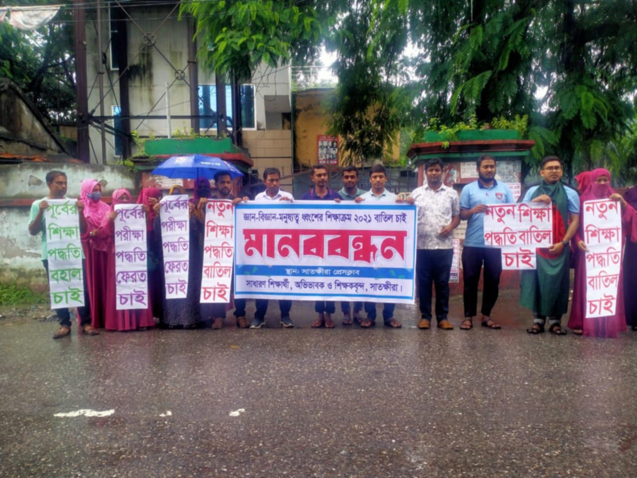 নতুন শিক্ষাক্রম বাতিলের দাবিতে সাতক্ষীরায় মানববন্ধন