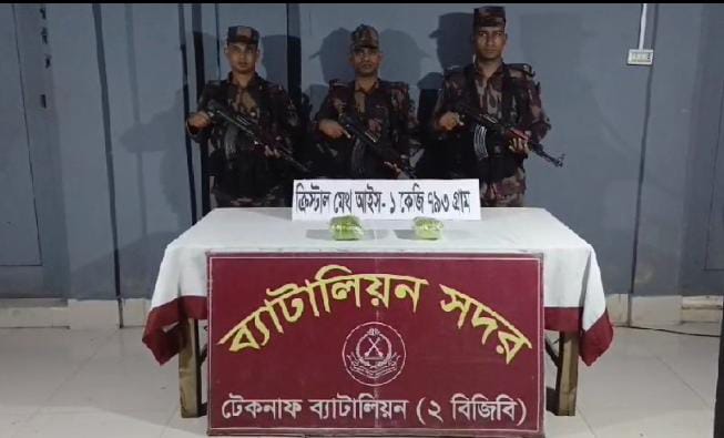 মোহাম্মদ মাসুদ:- বর্ডার গার্ড বাংলাদেশ টেকনাফ ব্যাটালিয়ন (২ বিজিবি) টেকনাফ সীমান্তে আভিযানিকদল কর্তৃক অভিযানে ১.৭৯৩ কেজি ক্রিস্টাল মেথ আইস জব্দ।