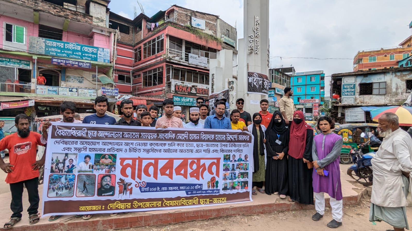 নিজস্ব প্রতিনিধি:- বৈষম্যবিরোধী ছাত্র আন্দোলনে অংশ নেওয়া ছাত্র জনতার উপর দেবিদ্বারের আওয়ামী সন্ত্রাসীদের দ্বারা নির্বিচারে গুলি ও হামলার প্রতিবাদ এবং