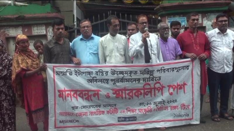 মোঃ মোকাররাম বিল্লাহ ইমন,ক্রাইম রিপোর্টার, সাতক্ষীরা।। সাতক্ষীরায় সড়কের পাশ থেকে উচ্ছেদকৃত অসহায় ভূমিহীন পরিবারগুলোকে পুনর্বাসনের দাবিতে মানববন্ধন অনুষ্ঠিত হয়েছে। বুধবার