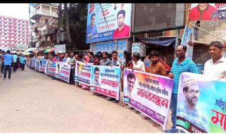 এমপি আনার অপহরণ মামলার আসামী মিন্টুর মুক্তির দাবীতে ঝিনাইদহে মানববন্ধন