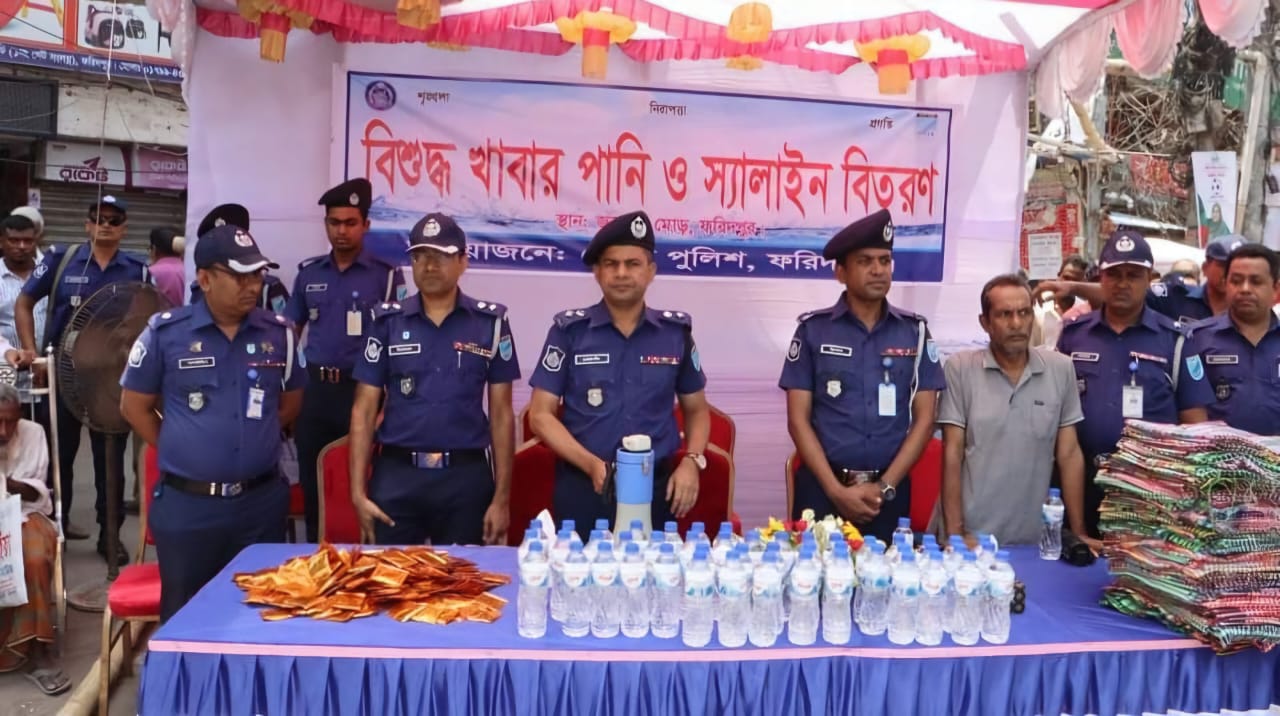ফরিদপুরে জেলা পুলিশের উদ্যোগে বিশুদ্ধ খাবার পানি ও খাবার স্যালাইন বিতরণ