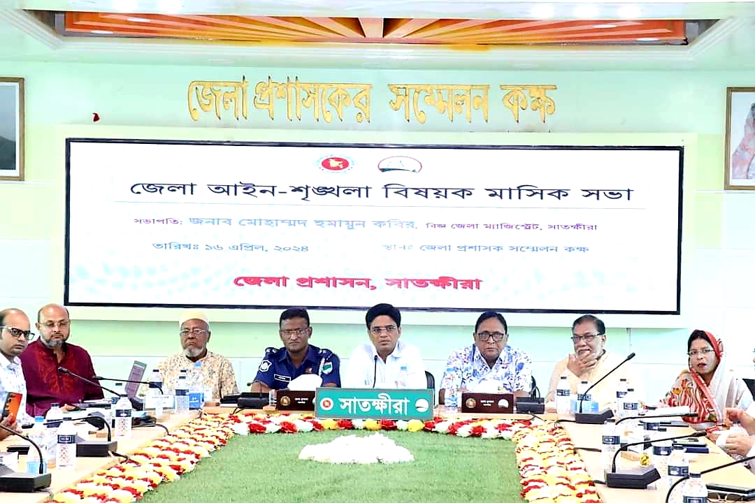 জিএমআবু জাফর(সাতক্ষীরা প্রতিনিধি) ১৬ এপ্রিল জেলা প্রশাসকের কার্যালয় সাতক্ষীরাতে জনাব মোহাম্মদ হুমায়ুন কবির, জেলা প্রশাসক, সাতক্ষীরার সভাপতিত্বে জেলা আইন-শৃঙ্খলা বিষয়ক