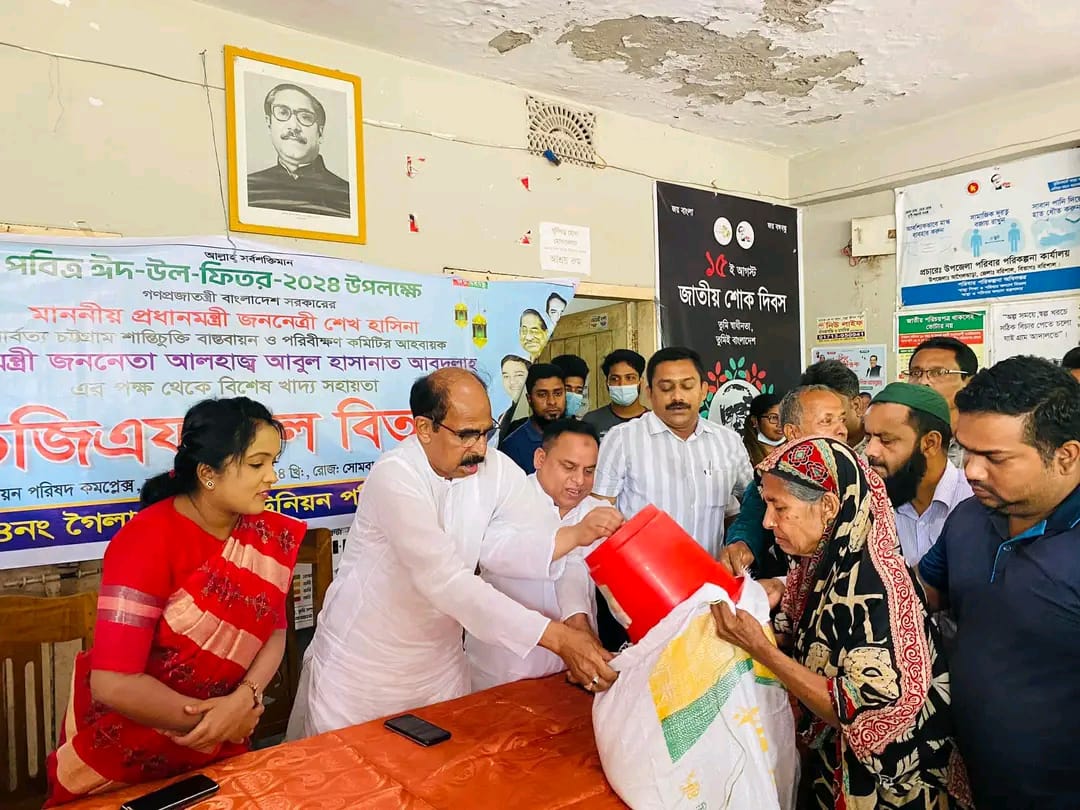 আগৈলঝাড়ায় প্রধানমন্ত্রীর উপহারের খাদ্য সামগ্রী বিতরণ