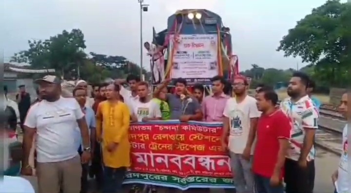 স্টপেজ দাবিতে ট্রেনের গতিরোধ ও মানববন্ধন