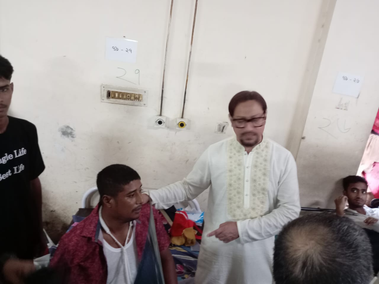 সন্ত্রাসী হামলায় আহত স্বেচ্ছাসেবক দল নেতা ইউসুফ তালুকদারের শয্যাপাশে ডাঃ শাহাদাত হোসেন